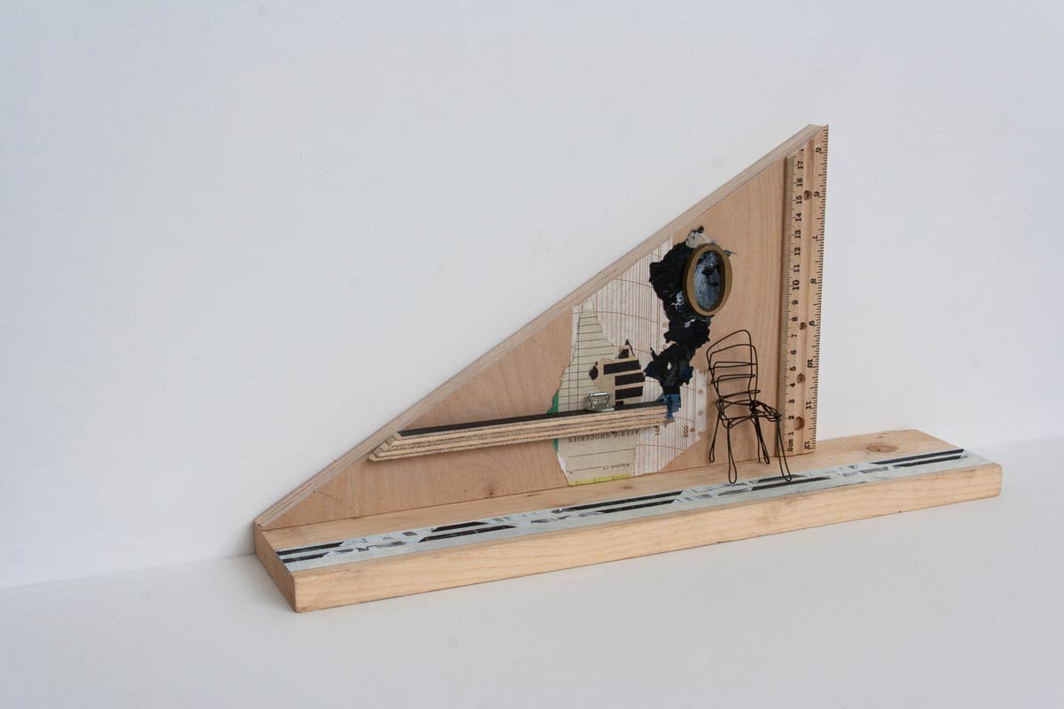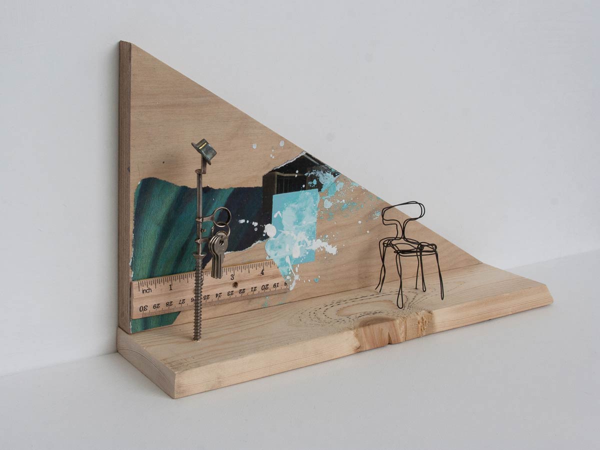 - Temporary Residence, 2015, mixed media on wood scraps, 16.75″ x 8.5″ x 3.5″, SOLD